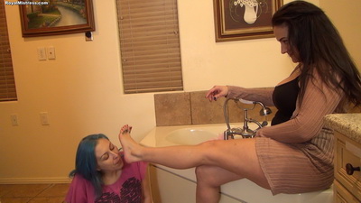 Slave girl prepares Mistress Kali's bath and worships her feet.